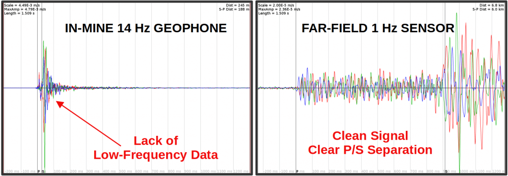 It’s a fair question. If your mine is already wired with an extensive, high-density seismic array, adding sensors kilometres away might seem redundant. However, internal arrays have blind spots – not in terms of location, but in terms of magnitude accuracy and external impact.