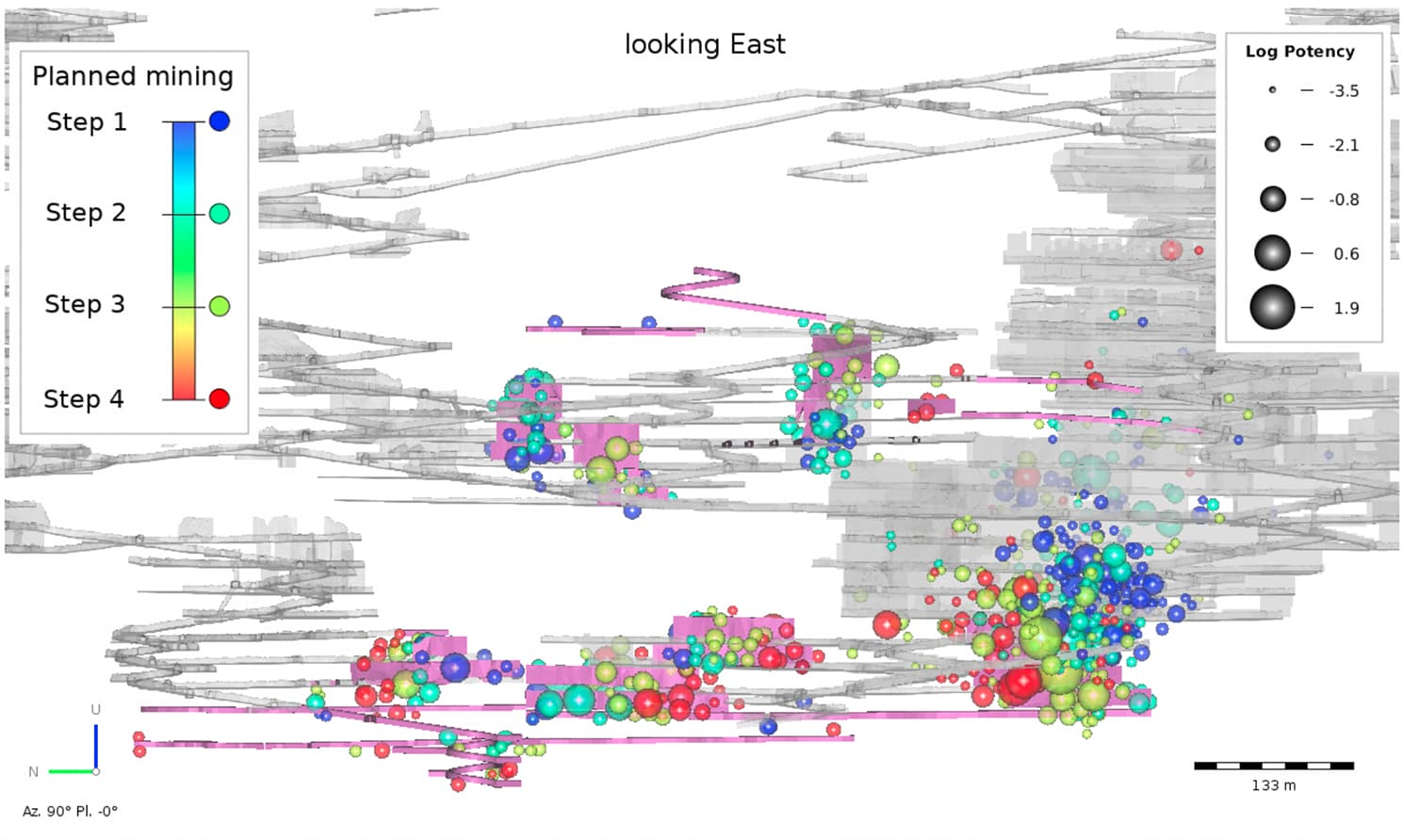This method is most useful when comparing the seismic or ground motion hazard for different mining scenarios (e.g. ranking different stoping sequences).