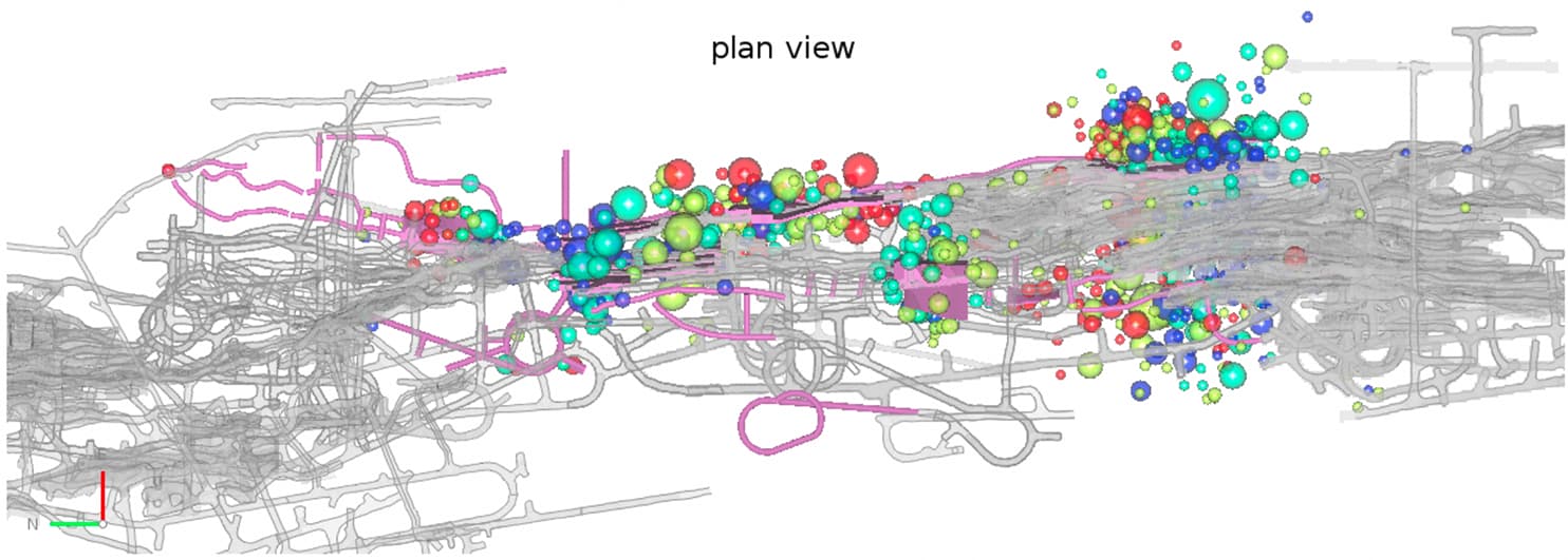 Situations can arise at mines that require special, focused projects. IMS offers a variety of ad hoc seismological projects and analyses designed to improve seismic data quality and to get the most out of a microseismic monitoring system. These can be related to calibration and verification of seismological system settings (e.g. velocity and attenuation calibration, and site performance), calibration of mine-specific hazard analysis tools (e.g. calibration of Short Term Activity Tracker, ground motion prediction equations, and ground motion hazard for future mining scenarios) or forensic analysis of specific seismic events (e.g. calibration of Short Term Activity Tracker, ground motion prediction equations, and ground motion hazard for future mining scenarios) or advanced forensic analysis of specific seismic events (e.g. instant large-event analysis, and advanced large event analysis).