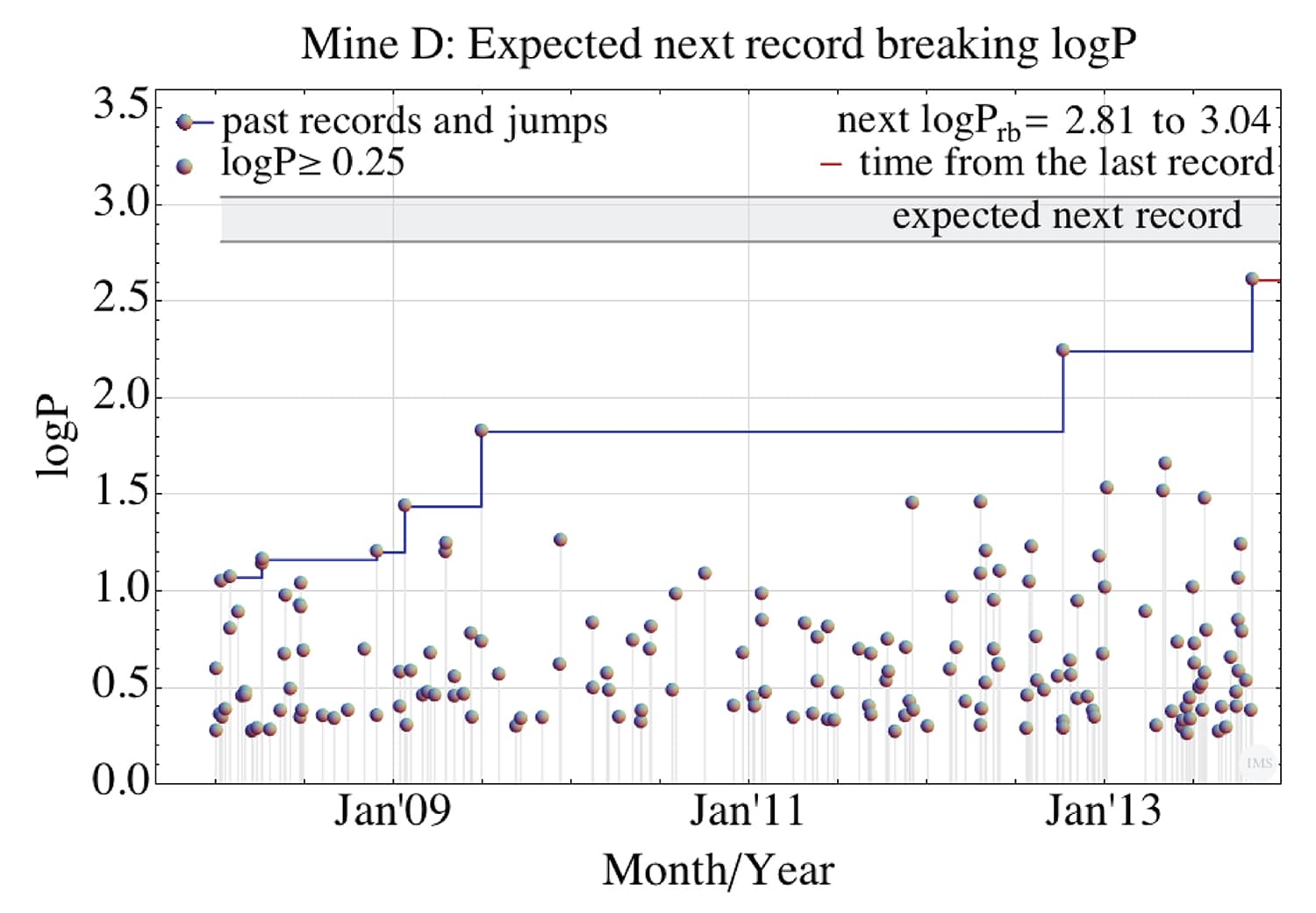 - the expected value and upper limit of the next record-breaking event is evaluated