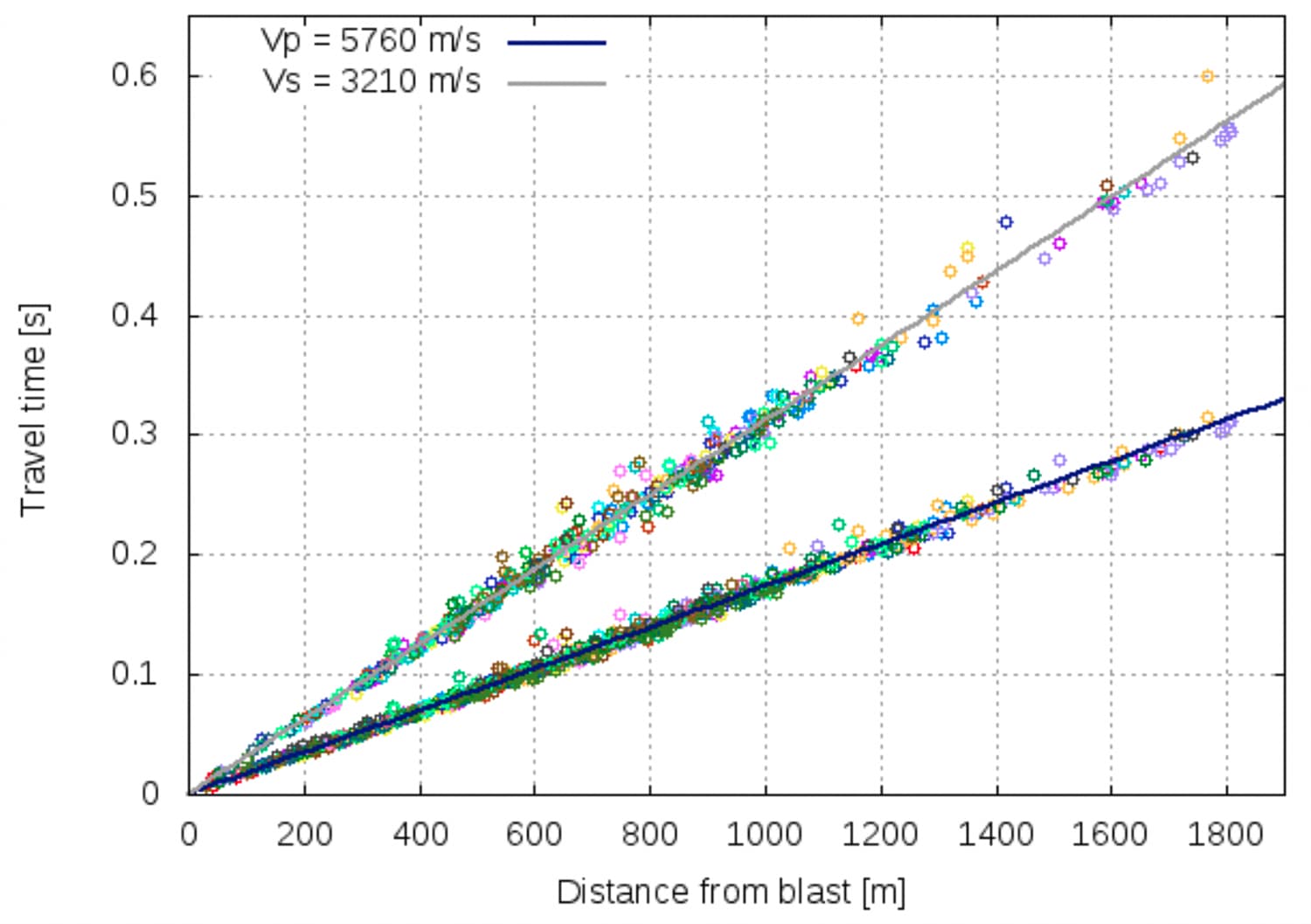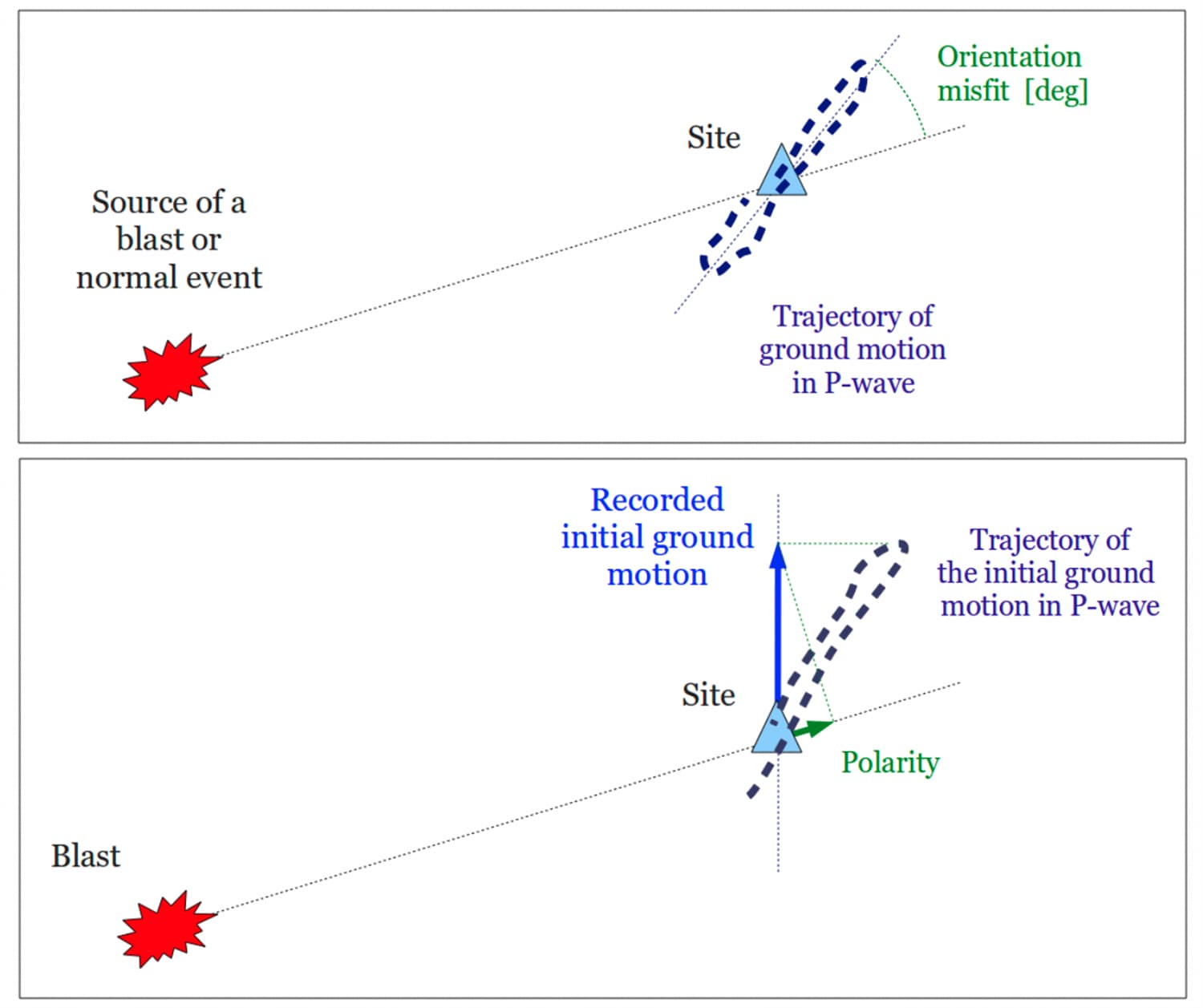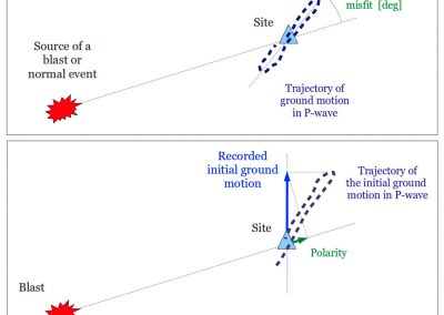 Calibration blasts with known location are used to invert for the most appropriate per-site P- and S-wave velocities. When required, more complex 3D velocity models can be calibrated.