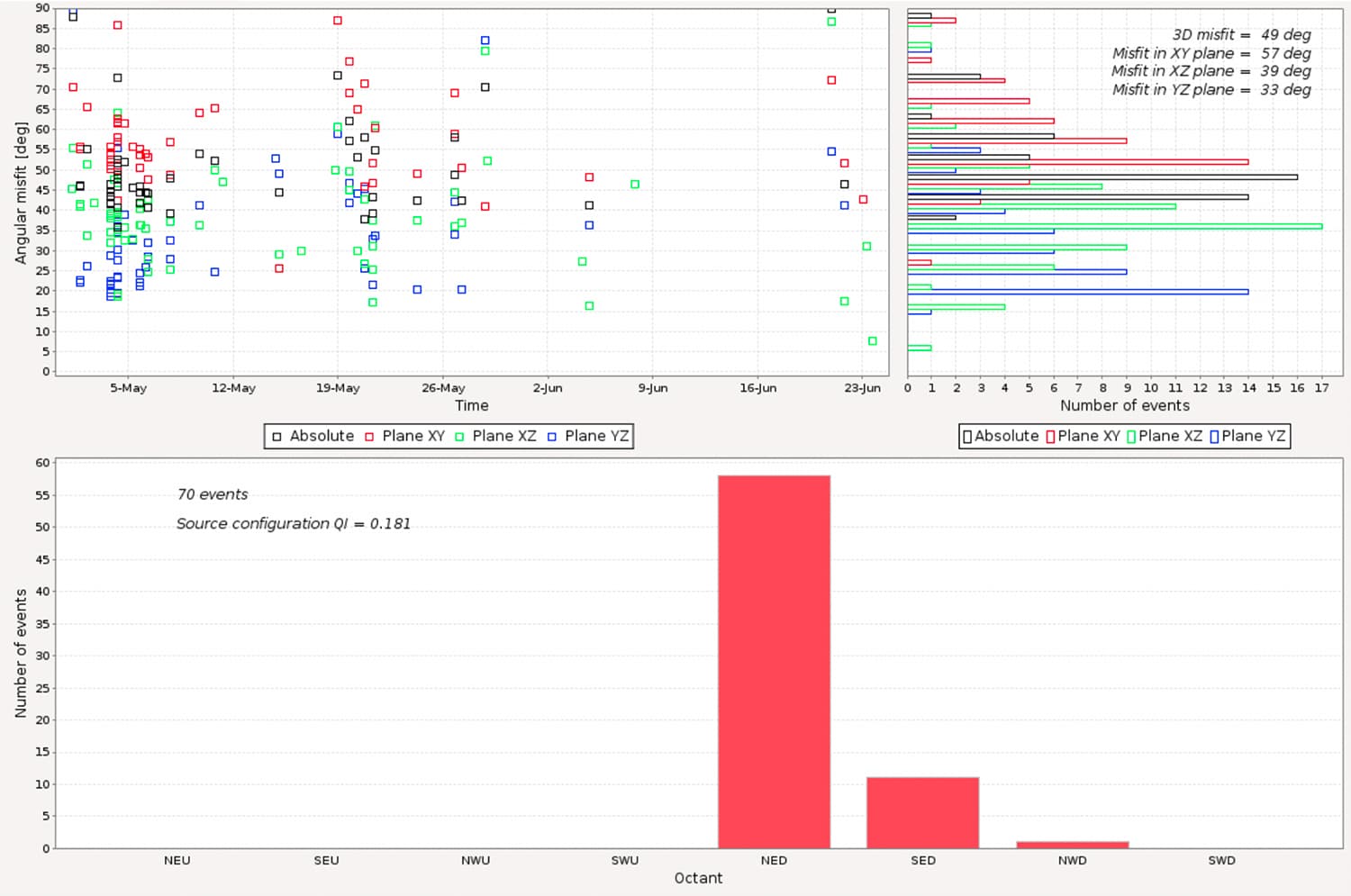 Using the property of P-waves that they are polarised in the direction of their propagation, we verify the orientation settings of sensors, which is required for moment tensor inversion and location with direction algorithms.