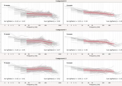 The spectral response of sites is evaluated by comparing the recorded and expected P- and S-wave signals. This helps to identify damaged sensors or those experiencing strong resonances. Appropriate cut-offs can then be set so that these resonances do not corrupt estimates of seismic source parameters.