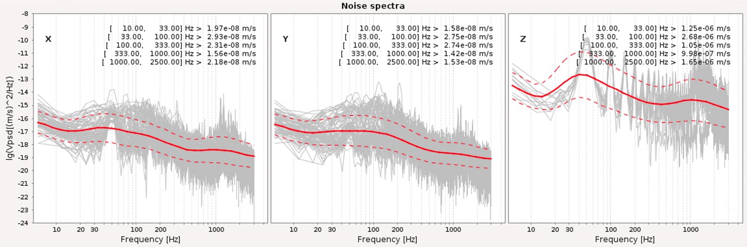 The pre-trigger waveform recordings of all sites are used to calculate the root-mean-square and spectral characteristics of background noise on a per-component basis. This helps to identify potentially problematic sensors, or explain variations in system sensitivity.